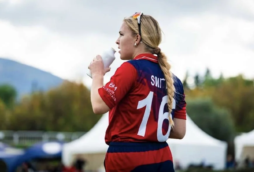 Trinity Smith known for her right-handed batting and right-arm medium bowling. In 35 WT20Is, she has scored 431 runs at an average of 22.68, including two unbeaten half-centuries 59* against Spain and 56* against France both earning her Player of the Match awards. She made history as the first Jersey woman to score a WT20I fifty and was later nominated for the ICC Women’s Player of the Month. With the ball, she has taken 5 wickets, with best figures of 2/18.